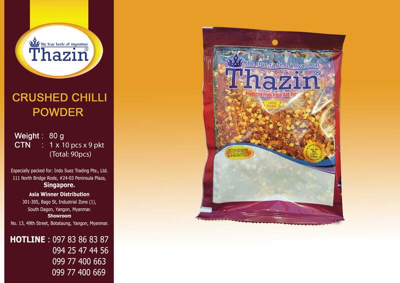 80g packet : 600 kyats 200g with Box : 1,400 kyats 800g Pkt : 5,100 kyats 1.6kg Pkt : 10,100 kyats Bulk 10kg / 15kg / 25kg / 50kg - 51,000 ks / kg in PP Bag |